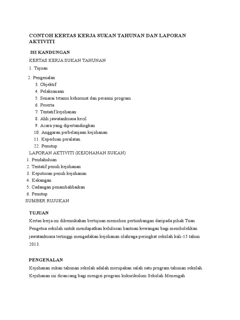 Contoh Kertas Kerja Program Sukan Pdf - Kertas Cadangan Prog Pembangunan Sukan Pdf